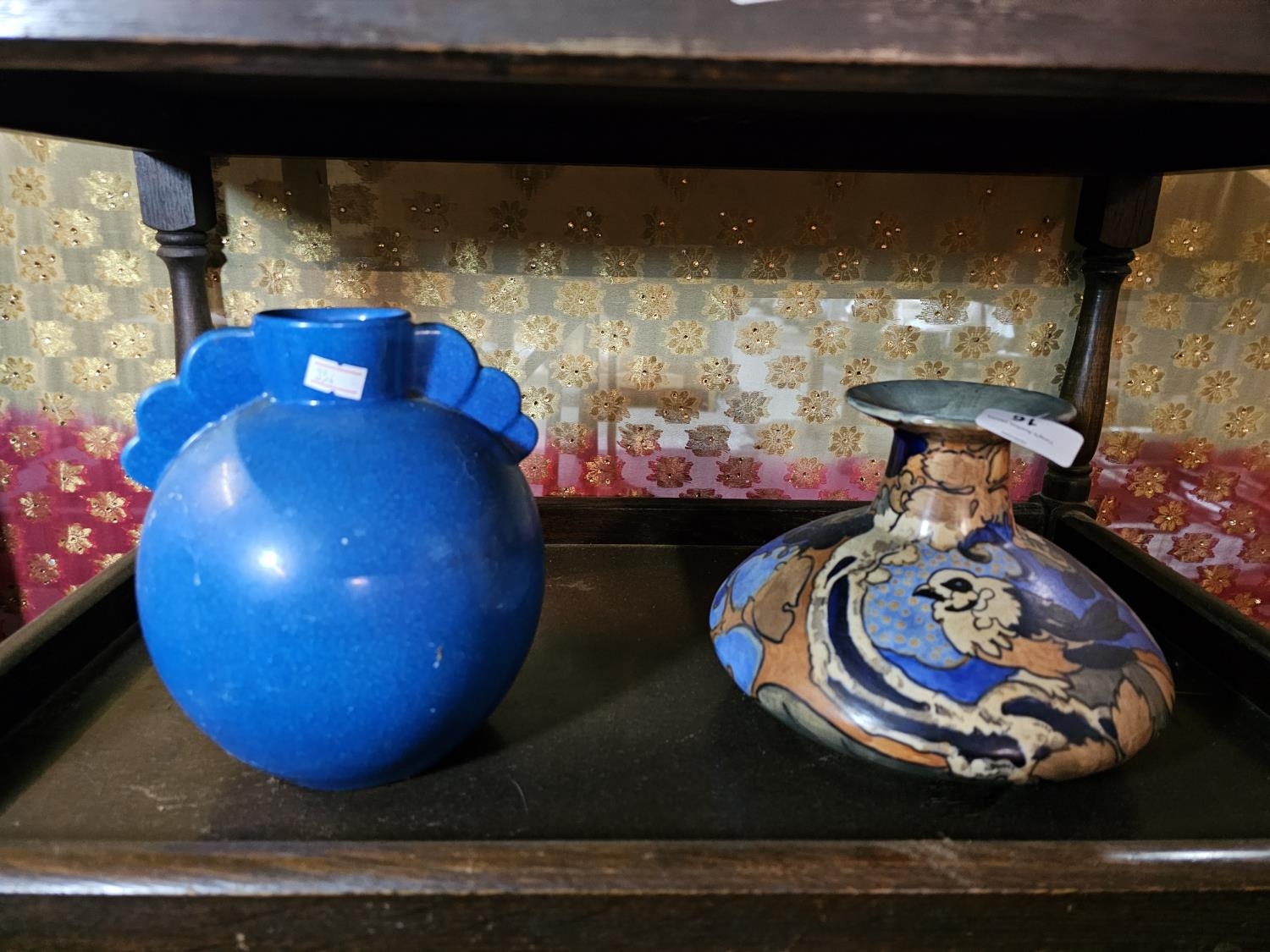 Burley ware art deco squat vase 'Amstel' design by Fredrick Rhead and a Boch Freres Keramis Vase designed by Charles Catteau in Egyptian Blue c1920's