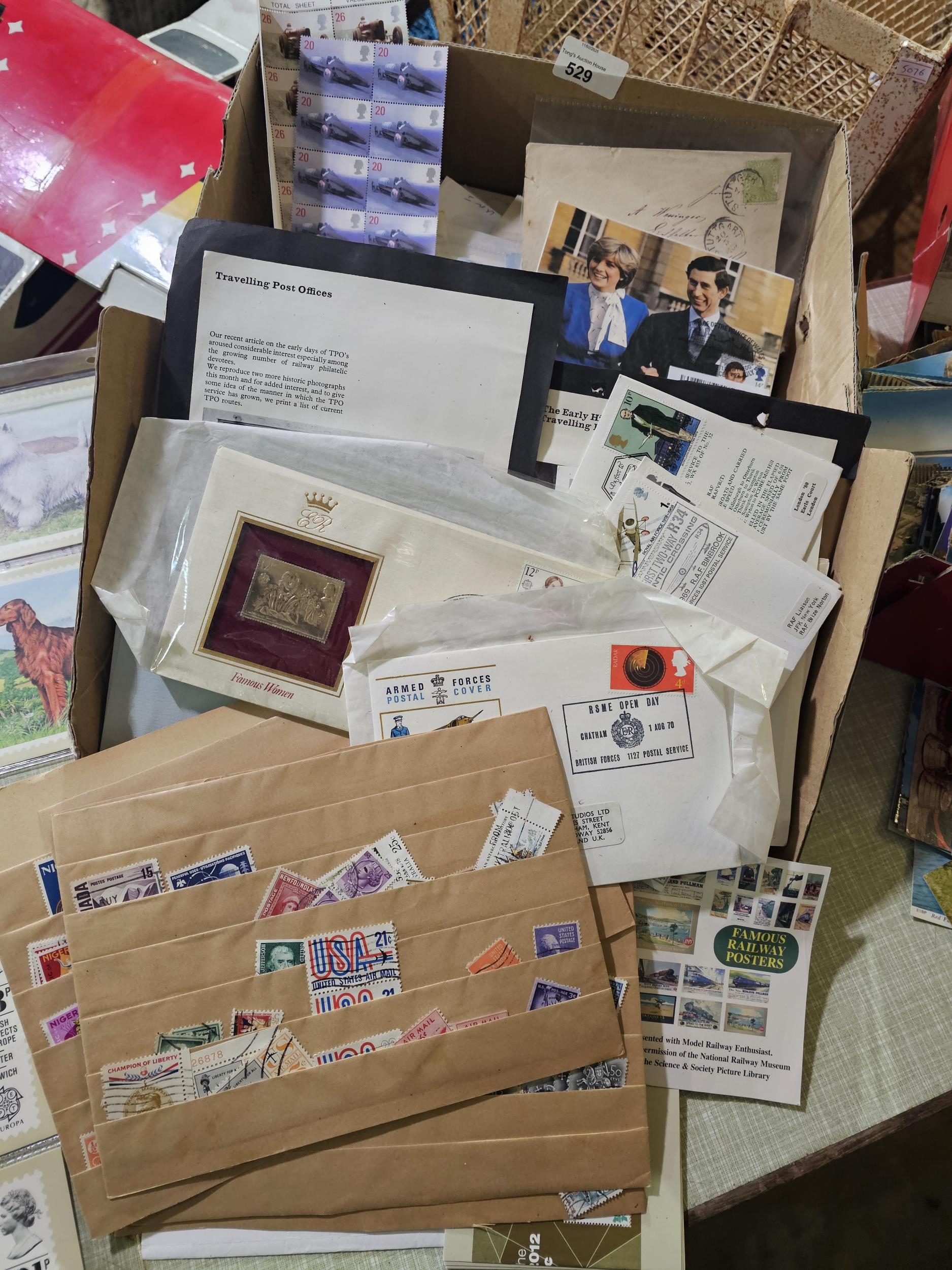Very large collection of first day covers, vintage postcards and loose stamps. Viewing highly recommended.