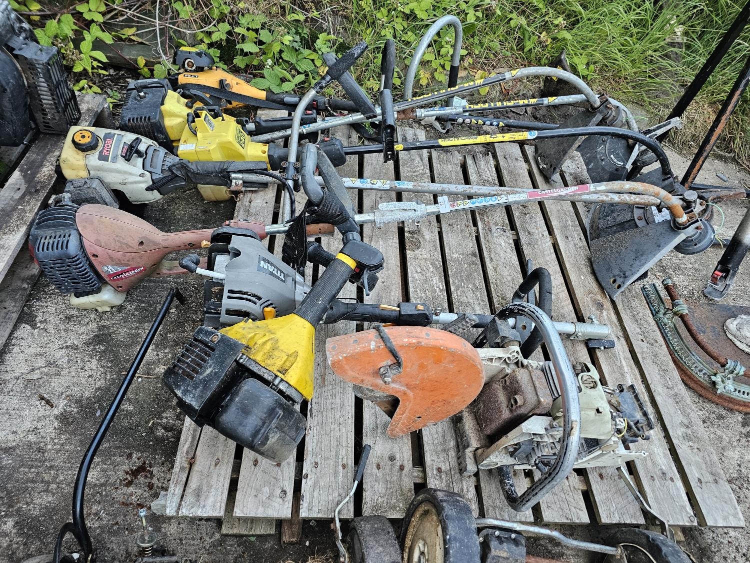 JOB LOT OF PETROL STRIMMERS SPARES OR REPAIR AND A STIHL DISC CUTTER