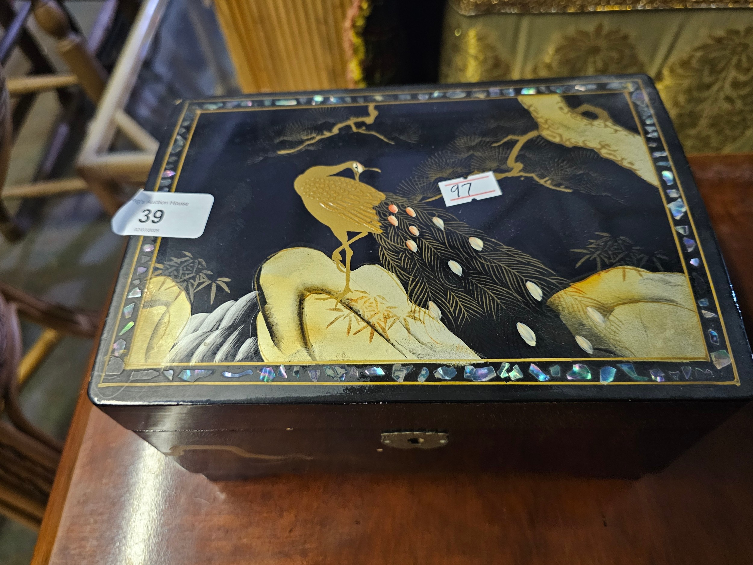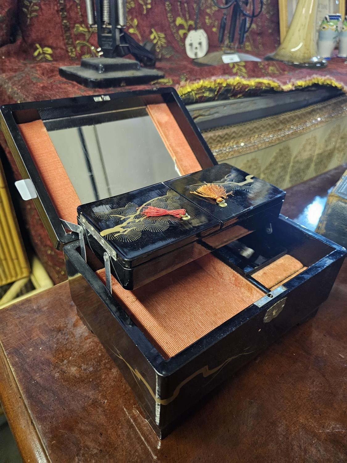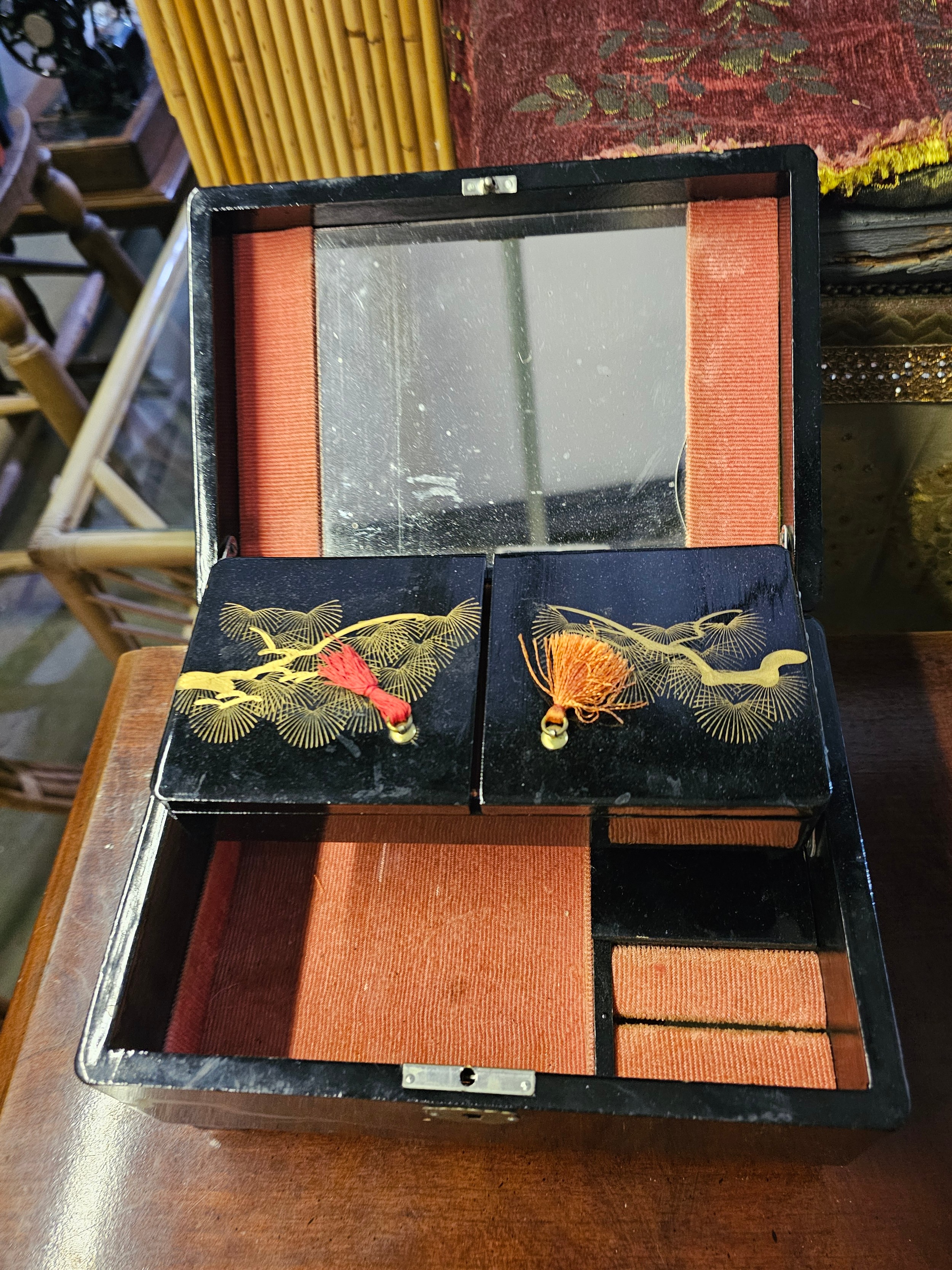 Vintage Japanese Black Lacquer Music/jewellery Box