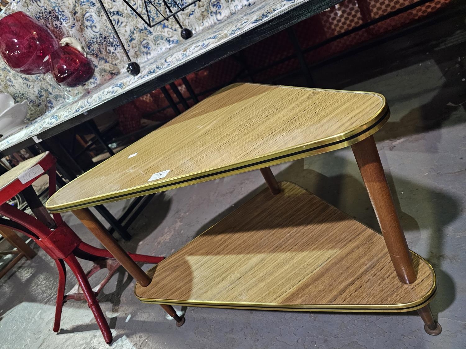 Vintage corner unit formica wood effect finish with black and gold trim great as a plant display stand