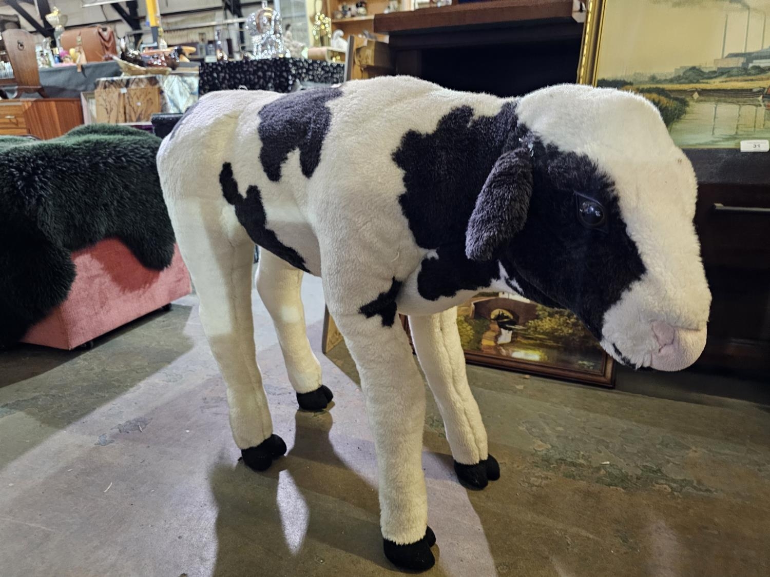 Large black and white calf stuffed toy by DPL Leeds Ltd