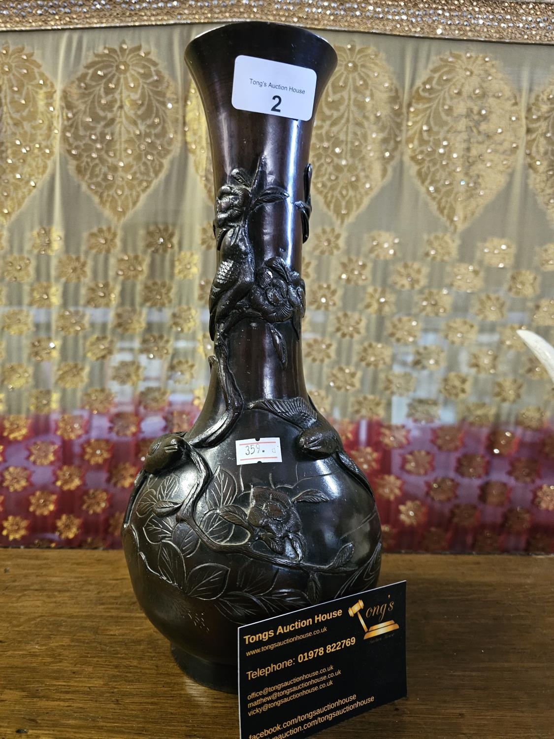 Asian bronze bird relief vase 39cm high