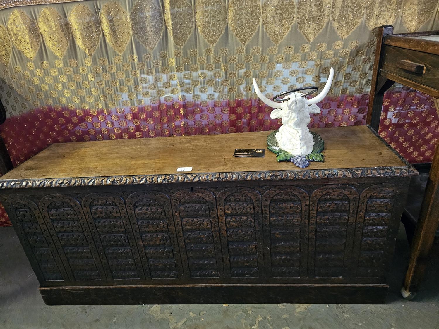 Beautiful carved oak coffee/chest / sword box 107cm long 46 cm high