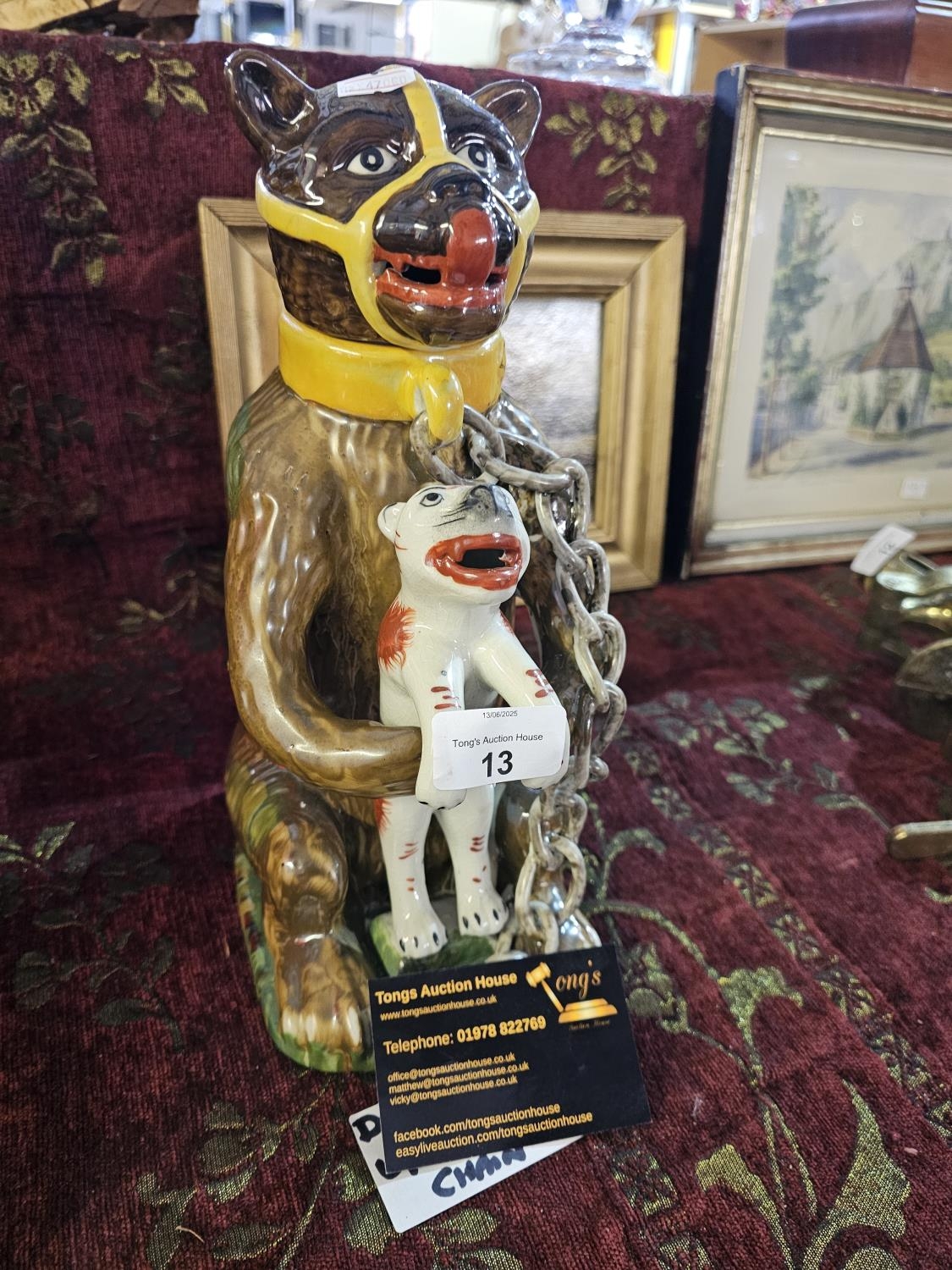 Reproduction Staffordshire Bear Baiting jug 39cm tall excellent condition