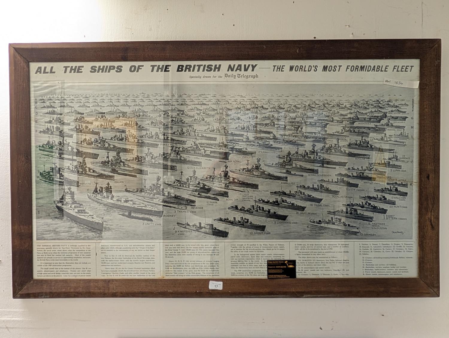Interesting lot originally commissioned by The Daily Telegraph from the renowned Naval artist Dr Oscar Parkes in1939 it depicts the Royal Navy at its peak of global influence. It has a number of unique features including "ghost ships" these were ships that were planned but never built due to the outbreak of war. 125 x 75 cm