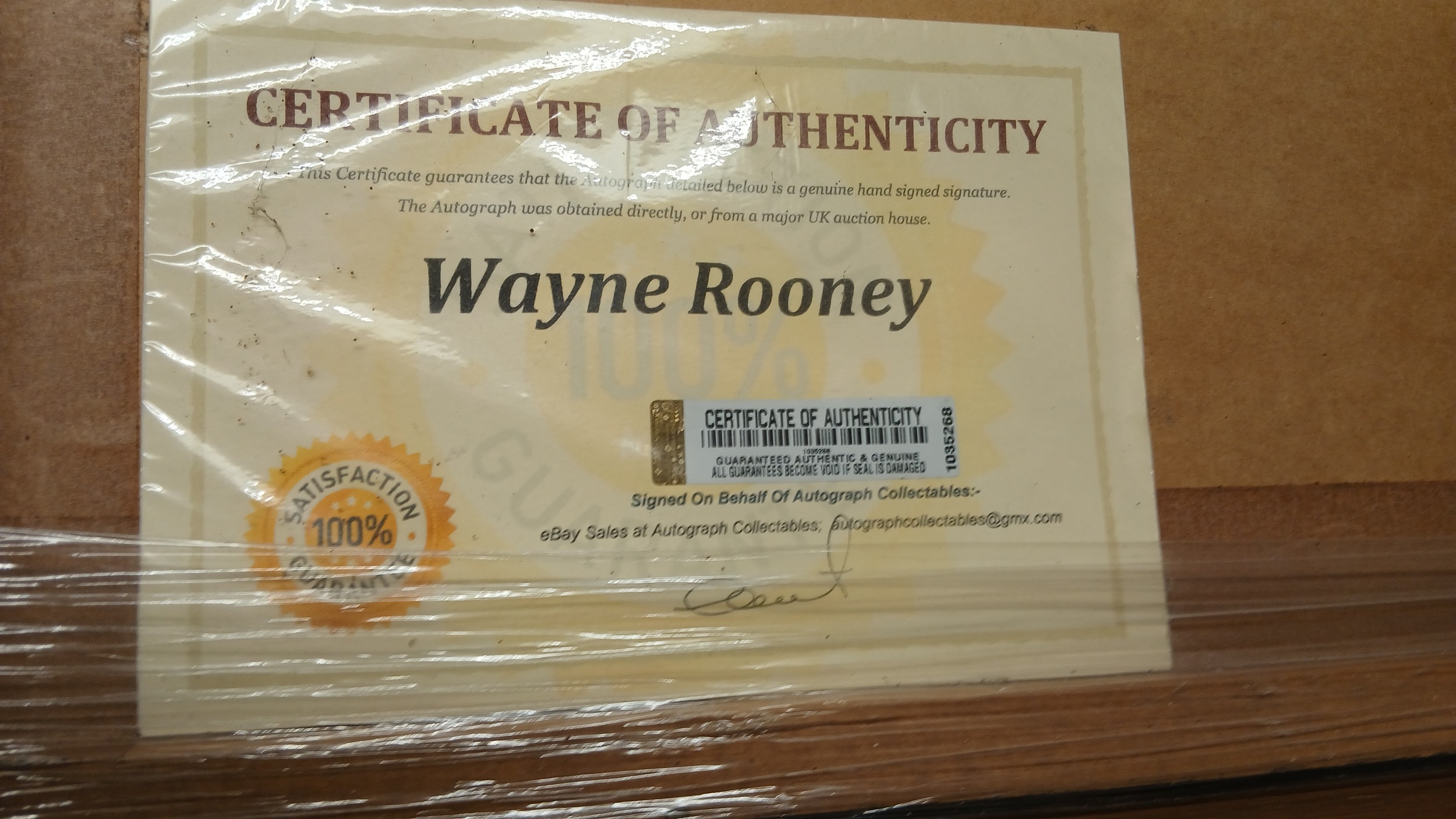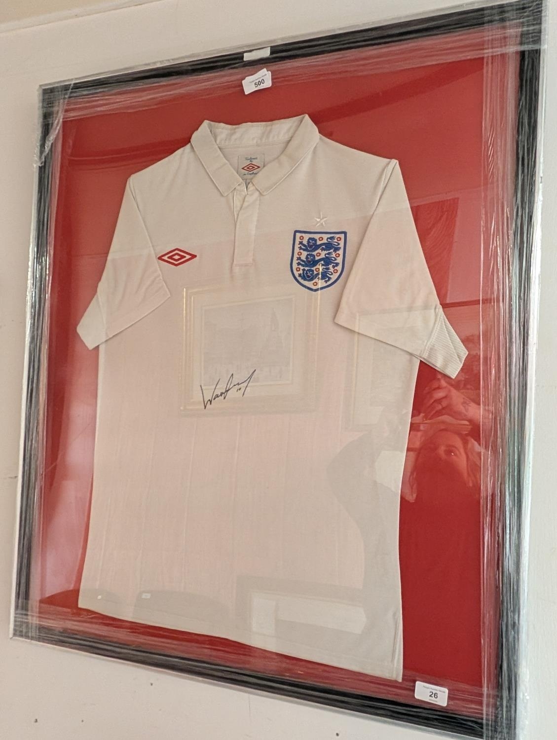Framed and signed 2010 World Cup football shirt signed by WAYNE ROONEY, 90 x 75 cm