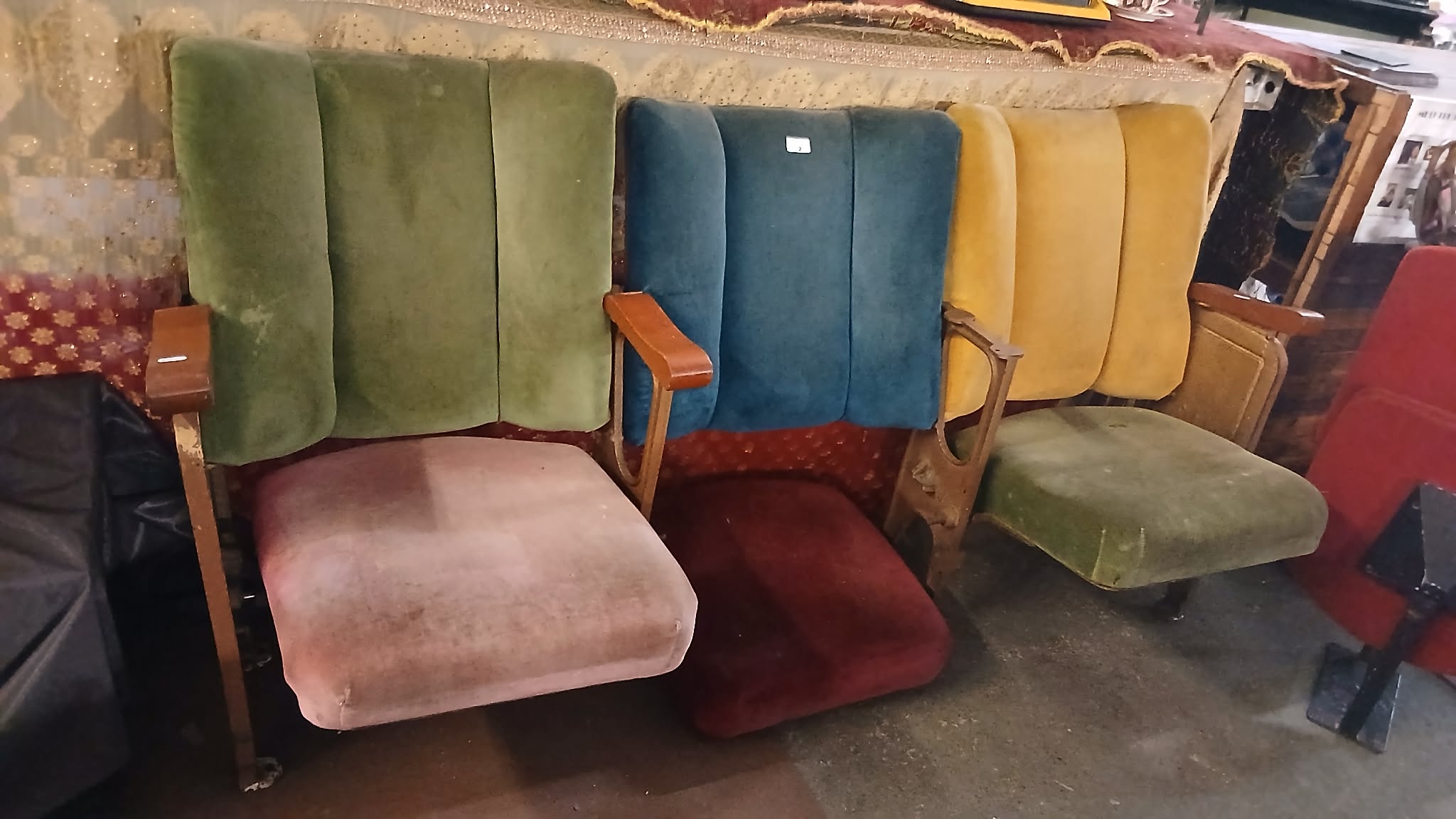 Beautiful Multicoloured Vintage cinema or theatre seats.